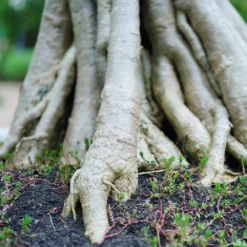 • Unusual shape. Desert Rose looks almost like a miniature tree because of the way it branches. If you follow the trunk down to the soil, you’ll see a swollen base. This does not indicate that something is wrong with the plant; it’s one of Desert Rose’s distinguishing characteristics.