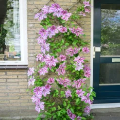 Nelly Moser Clematis works well as a back drop to late spring daffodils, tulips or peonies as well as along a fence at the side of the property. If your landscape does not have a fence, try letting the clematis climb up an ornamental obelisk or even through a conifer where the dark needles contrast with the delicate white flowers. Try planting 2 Nelly Moser Clematis ‘ā one on either side of an archway to give a lovely entrance to a garden area; or behind a favorite place to sit and relax on mild spring afternoons.